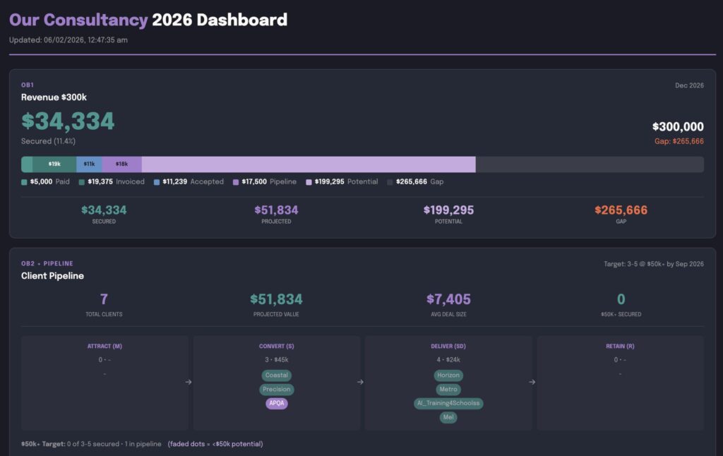 I ran a messy early-morning prompt in each about JOT, our internally built Practice Operating System — a markdown vault that runs our entire consultancy. Pipeline, clients, objectives, daily rituals, dashboards. 313 files across six layers.