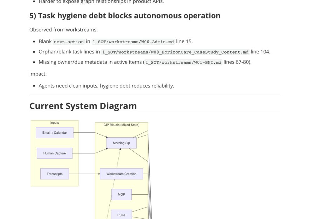 OpenAI gave me a solid markdown document. Analysis, mermaid diagrams, a phased roadmap, a next-10-tasks list. Competent. Useful. A good report.